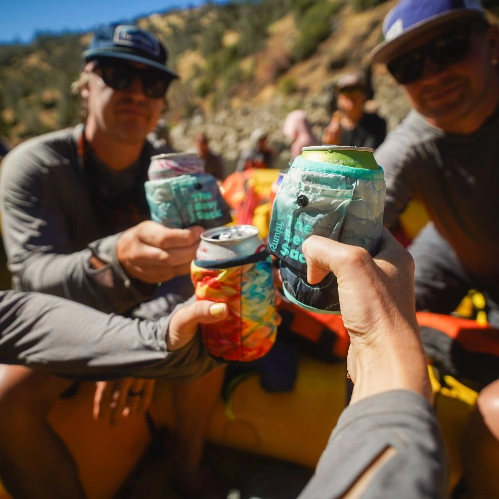 Once you’re done crushing cans, hang your Bevy Sack™ up or pack it down to pocket size using the attached stuff sack. Don’t forget that sharing is caring – you can gather a round with this Bevy Sack™ 6-pack, too.